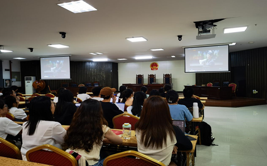 为深入开展学习贯彻习近平新时代中国特色社会主义思想主题教育,加强与员工的交流与互动,4月21日晚,伟德victor1946网站(纪检监察公司)党委书记蒙秋妍在公司模拟法庭为员工讲授形势政策课。公司2021级法学专业纪检监察实验班(本科)员工和2022级法律硕士专业学位(纪检监察特色方向)研究生参加。授课活动由2021级法学专业纪检监察实验班(本科)班主任王秀卫教授主持。