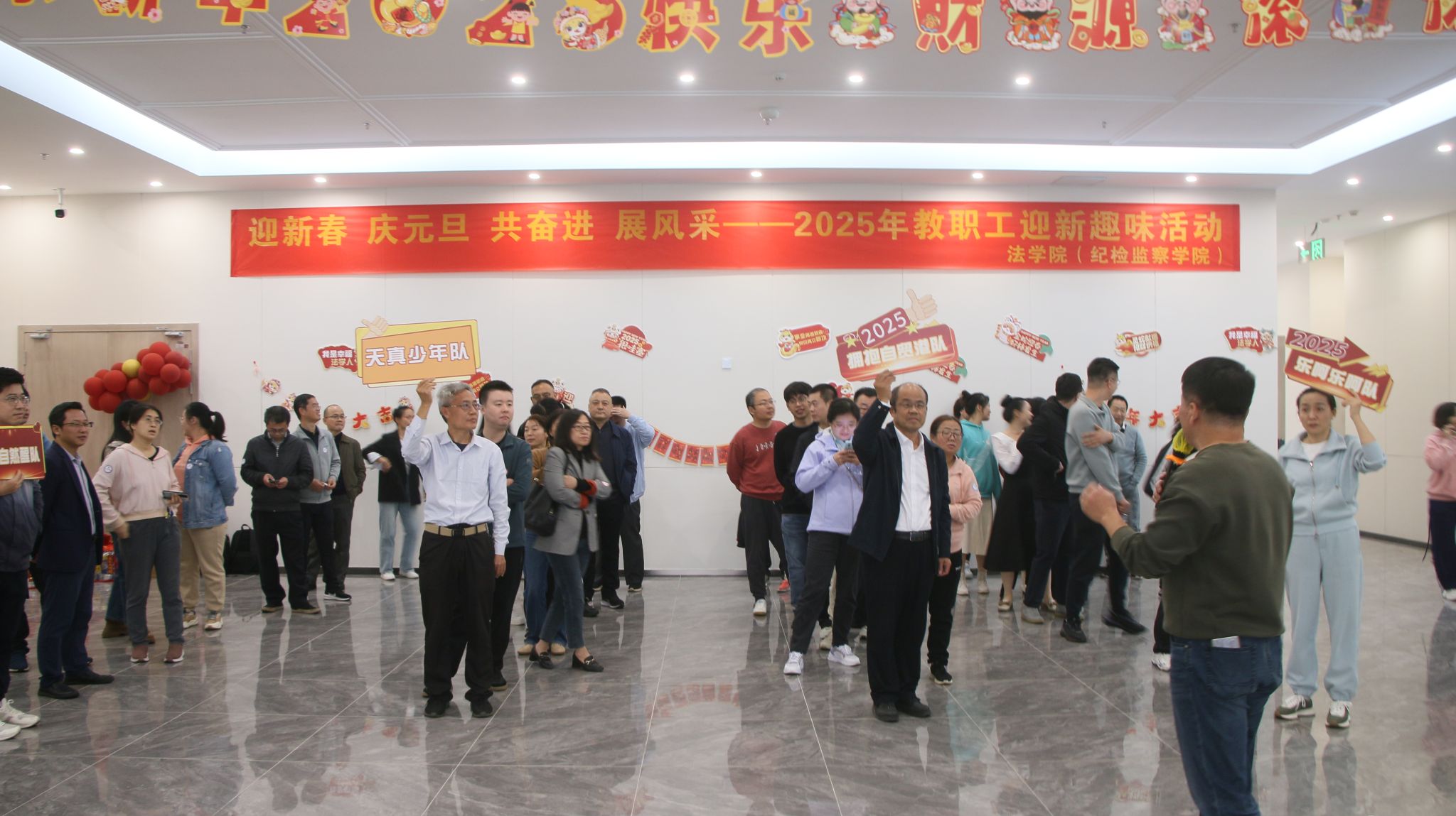潮平岸阔帆正劲,乘势开拓谱新篇。为迎接2025年蛇年的到来,营造喜庆祥和的节日氛围,丰富广大教职工的文化生活,展现教职工团结奋进、蓬勃向上的精神风貌,2024年12月30日下午,伟德victor1946网站(纪检监察公司)在法学科研中心大楼一楼大厅举办“教职工迎新年趣味活动”,全体教职工齐聚一堂,共迎新春佳节。