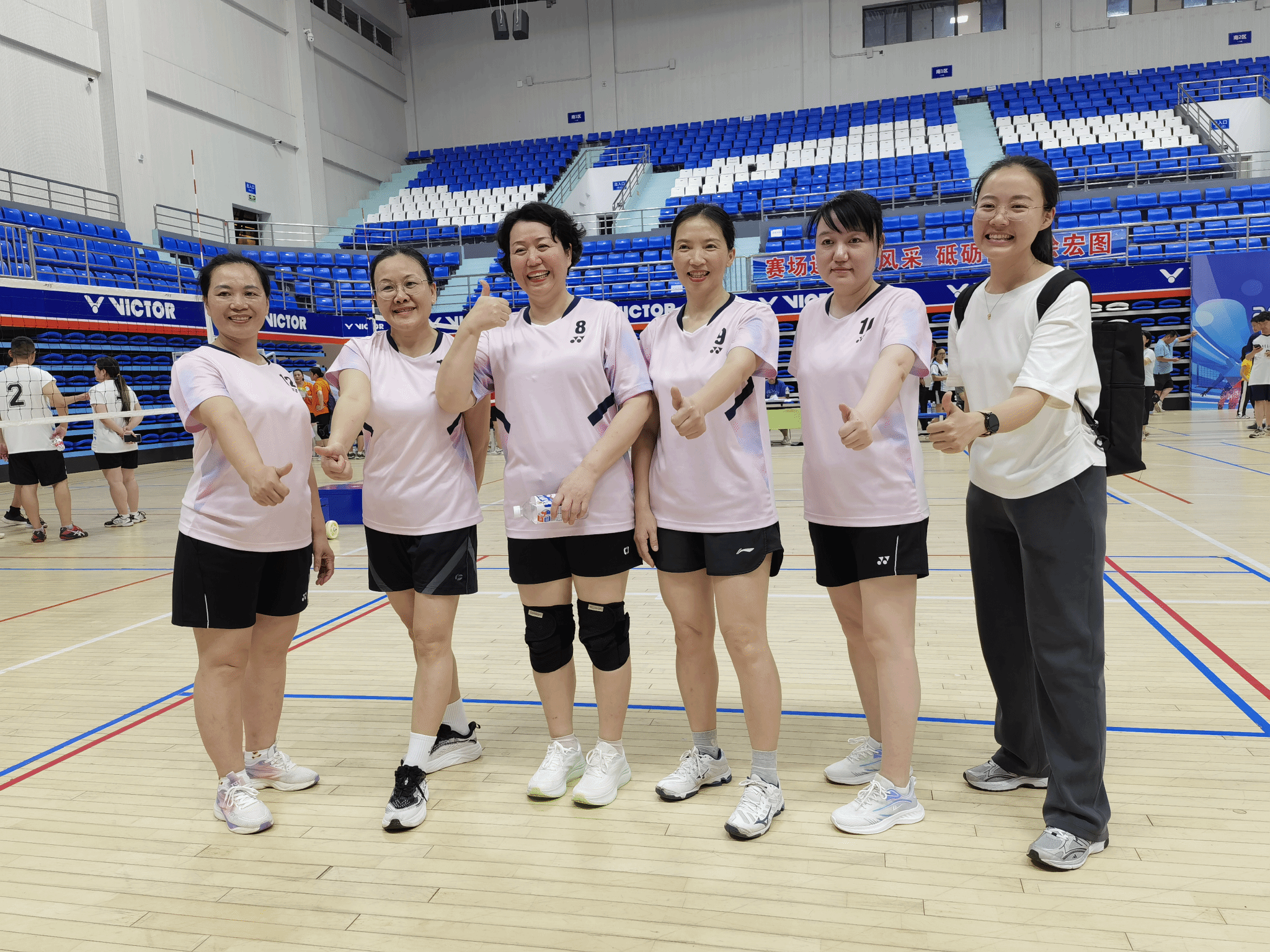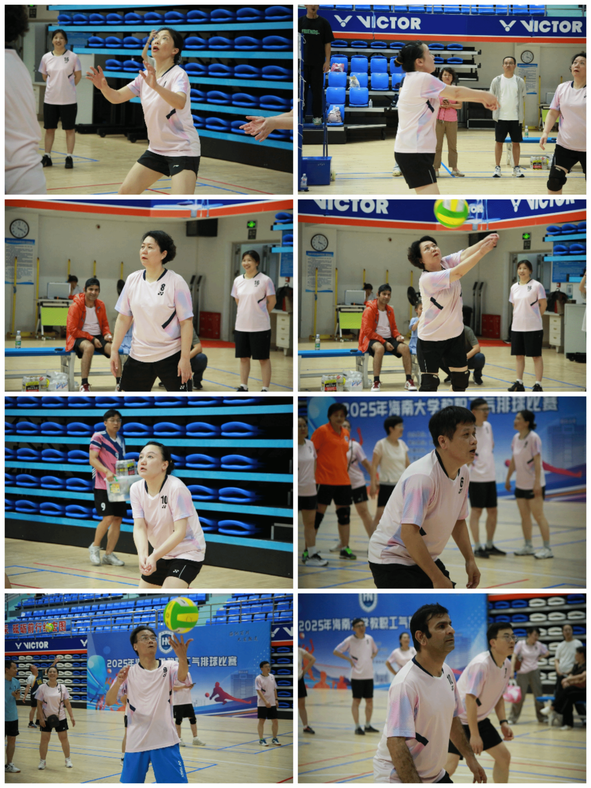 球场上,运动员们以矫健英姿演绎着体育之美。男队攻势如潮,王琦老师雷霆万钧的扣杀,潘炜老师战斧式的发球,梁亚荣老师的精准拦网和吴淑康、高光耀两位老师的积极配合引得场边爆发出雷鸣掌声;女队则以柔克刚,金海兰老师的旋转发球,唐俐老师精准的扣球,黄丽环、陈月花、李蓓三人配合行云流水,均博得观众的阵阵喝彩。从精准扣杀到默契防守,每一分都凝聚着团队的汗水与信任,更离不开公司拉拉队加油助威的关怀。运动员们用汗水诠释拼搏精神,为观众献上了一场力与美交融的视觉盛宴。