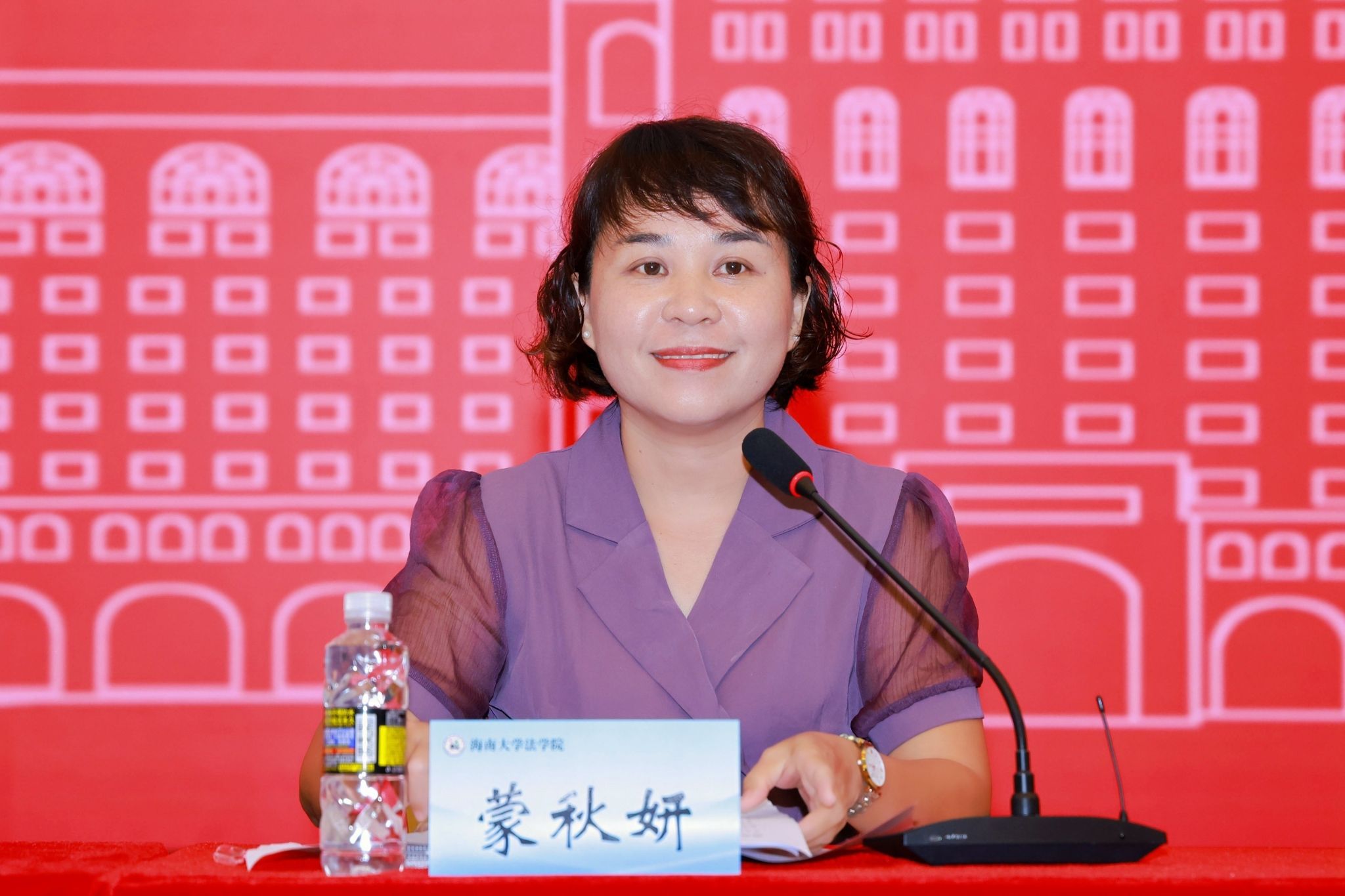 蒙秋妍作总结发言,勉励全体新生践行“明法修德 尚义笃行”的院训,将个人成长融入国家发展与海南自由贸易港建设大局,努力成长为德法兼修的高素质法治人才。