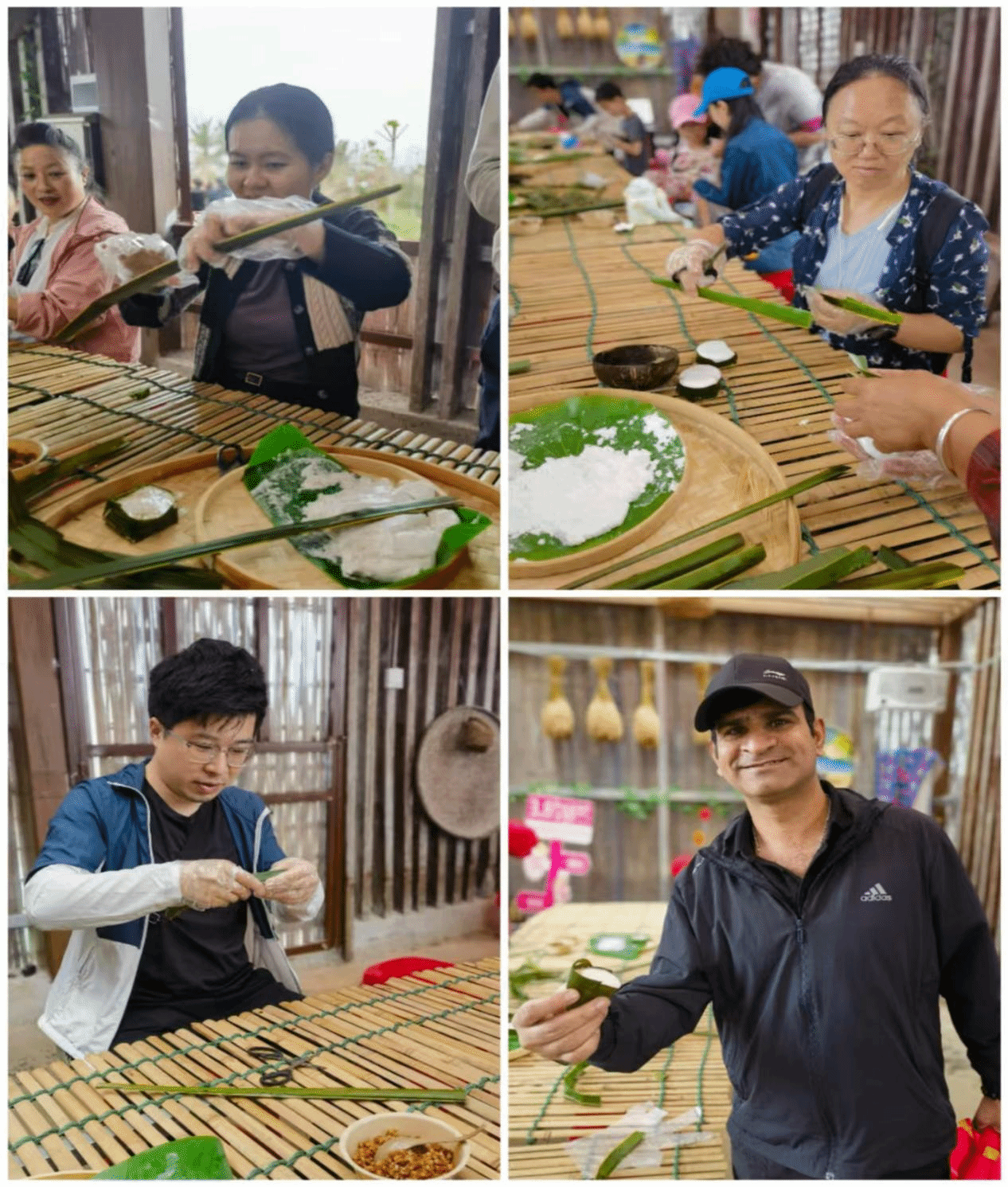 在手工制作环节,在专业师傅的指导下,大家亲手体验了制作薏粿的传统工艺,亲手揉面、包馅、压制,感受海南传统文化的魅力。这一环节不仅增进了大家对海南传统美食的了解,还促进了彼此之间的交流。