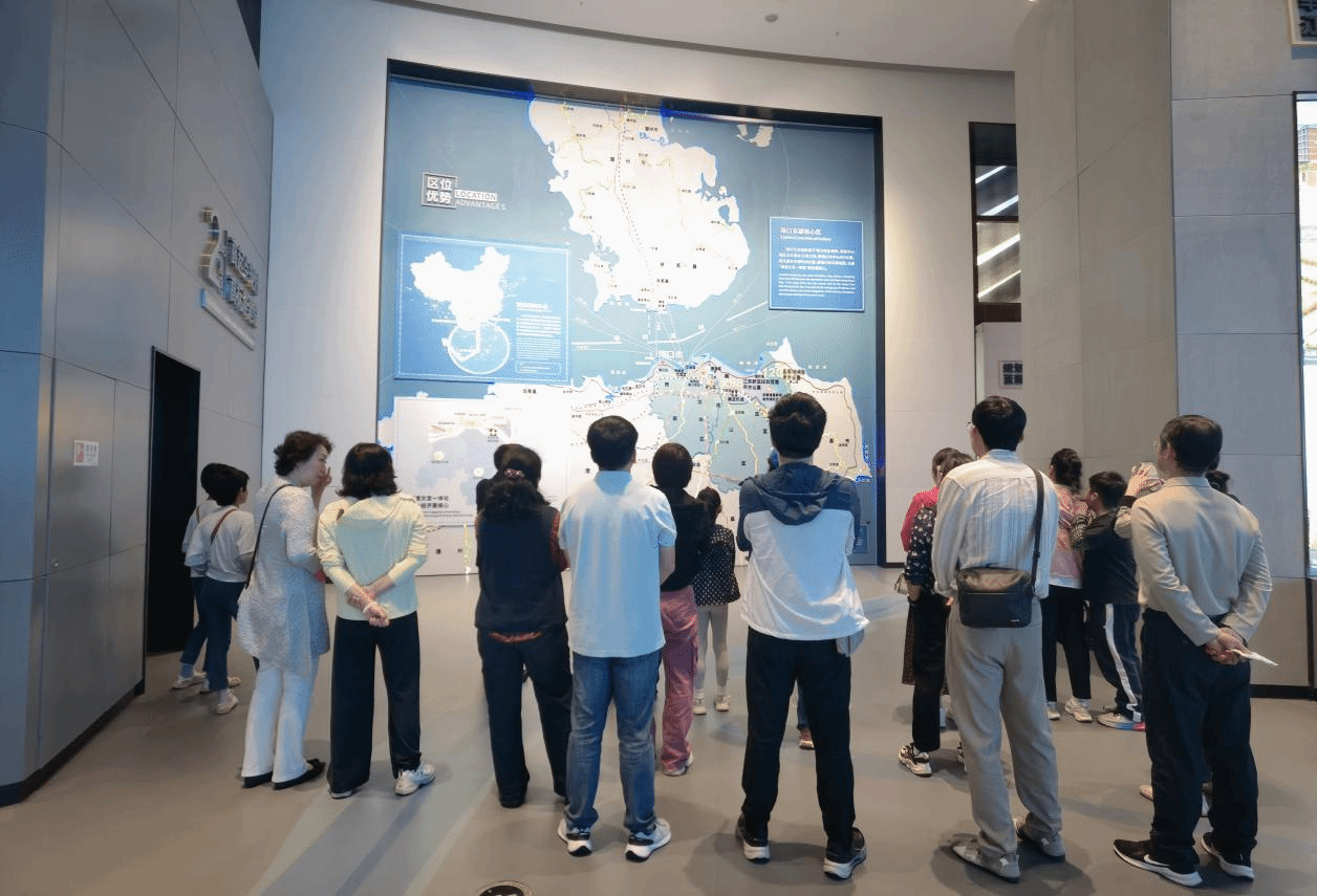 上午九点半,大家首先抵达江东新区展示厅。在讲解员的引导下,通过参观全景沙盘、动态影像与实物展品,系统了解了江东新区作为自贸港核心区域的规划蓝图、发展成就与未来愿景。从生态保护与城市建设的协同发展,到产业升级与民生改善的双向赋能,教职工们深切感受到自贸港建设的蓬勃生机,进一步激发了教师立足岗位、服务海南自贸港建设的责任感与使命感。