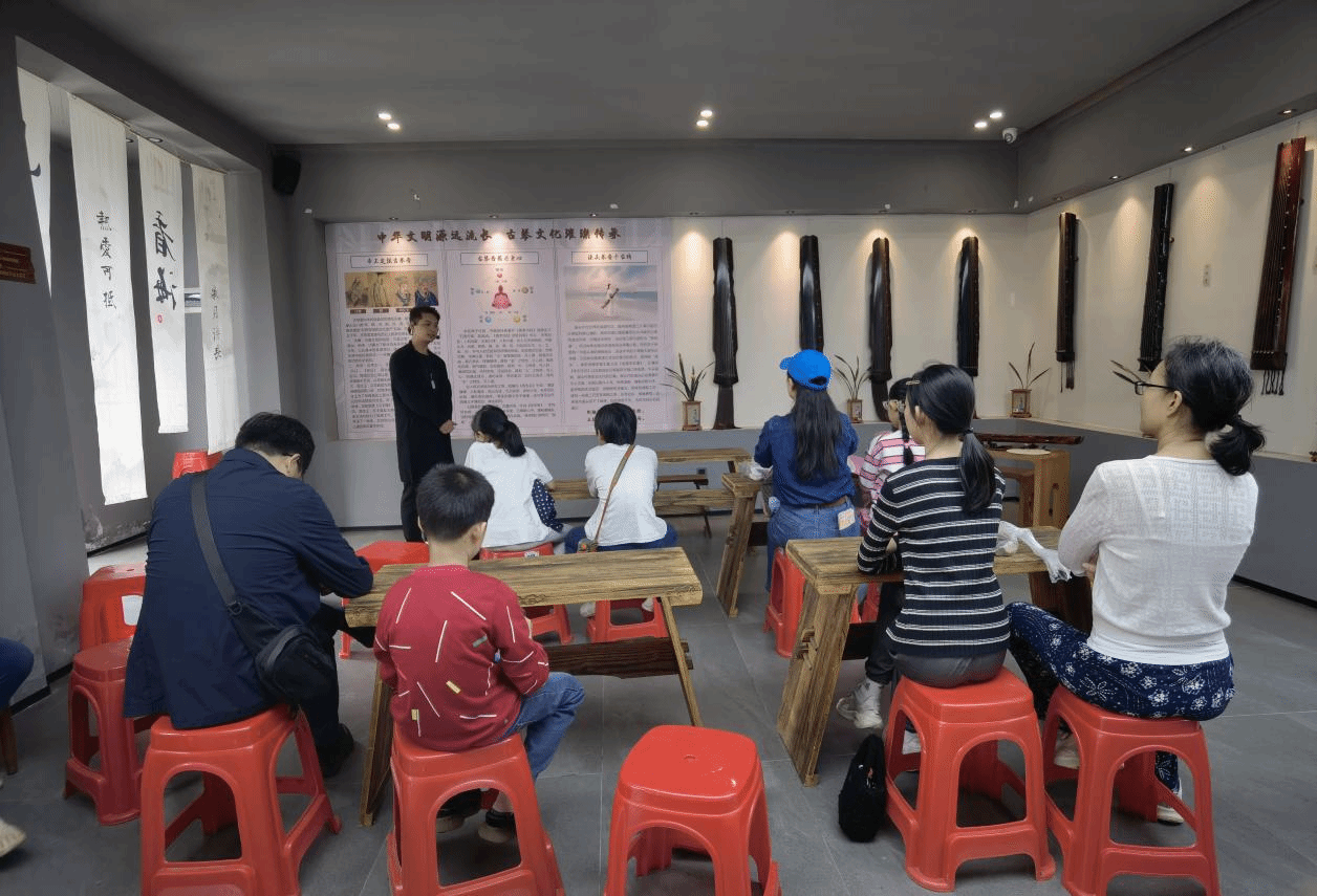 随后,大家漫步于白墙灰瓦的村落间,欣赏古琴主题墙绘,体验湿地风景。在古琴馆内,了解了古琴文化,聆听了古琴表演师傅带来的优美古琴演奏,感受非遗的独特魅力。