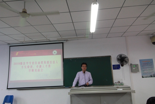 10月29日下午,2019级法学专业自由贸易港法治人才实验班、卓越人才班师生见面会在5-203教室举行,院领导、实验班班主任、卓越班班主任、辅导员、全体指导老师、院办、学工办、团委、教务办负责人、实验班和卓越班全体新生参加了此次会议,会议由刘政副经理(挂职)主持。