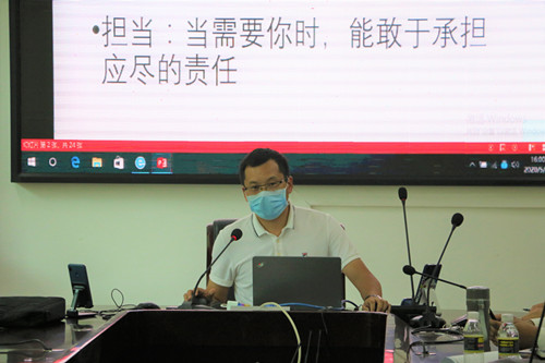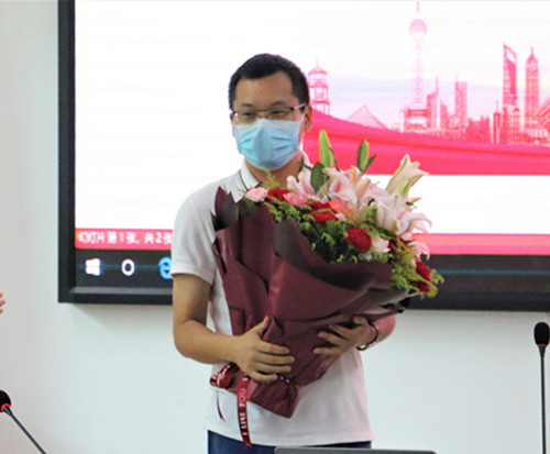 第一阶段:敬聘仪式。员工代表向援鄂医生、2017级法律硕士殷宗宝同志敬献鲜花,殷宗宝员工在国难之时挺身而出承担使命的精神,无愧此荣光,值得学习与尊敬。接着,受叶英萍书记、王琦经理委托,李昌郁副书记向殷宗宝同志颁发“伟德victor1946网站校外辅导员”聘书。作为伟德victor1946网站校外辅导员,殷宗宝医生将每个学期为伟德victor1946网站员工做生命健康教育报告会。