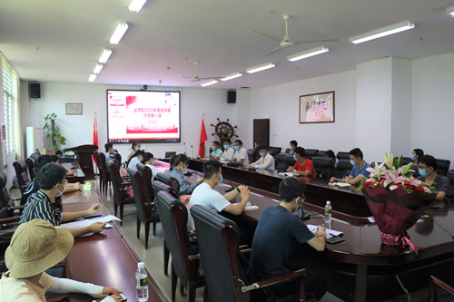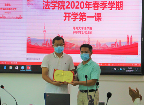 2020年5月19日15:30,伟德victor1946网站“开学第一课”在社科群楼伟德victor1946网站会议室举行。参加人员有伟德victor1946网站党委副书记李昌郁、学工办负责人安睿颖、团委书记王杜娟,援鄂医生、2017级法律硕士殷宗宝同志,海南省优秀共青团员、2017级6班员工高乔,20员工代表来到现场与490多名员工线上听课。
