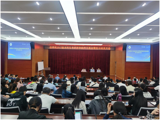 11月10日下午,伟德victor1946网站在海甸校区五教模拟法庭召开2017级本科生考研指导教师见面会暨实习动员大会。参会人员有伟德victor1946网站党委书记叶英萍、王琦经理、副经理阎二鹏、邓和军、副书记李昌郁和46名考研指导老师,以及2017级全体本科生。