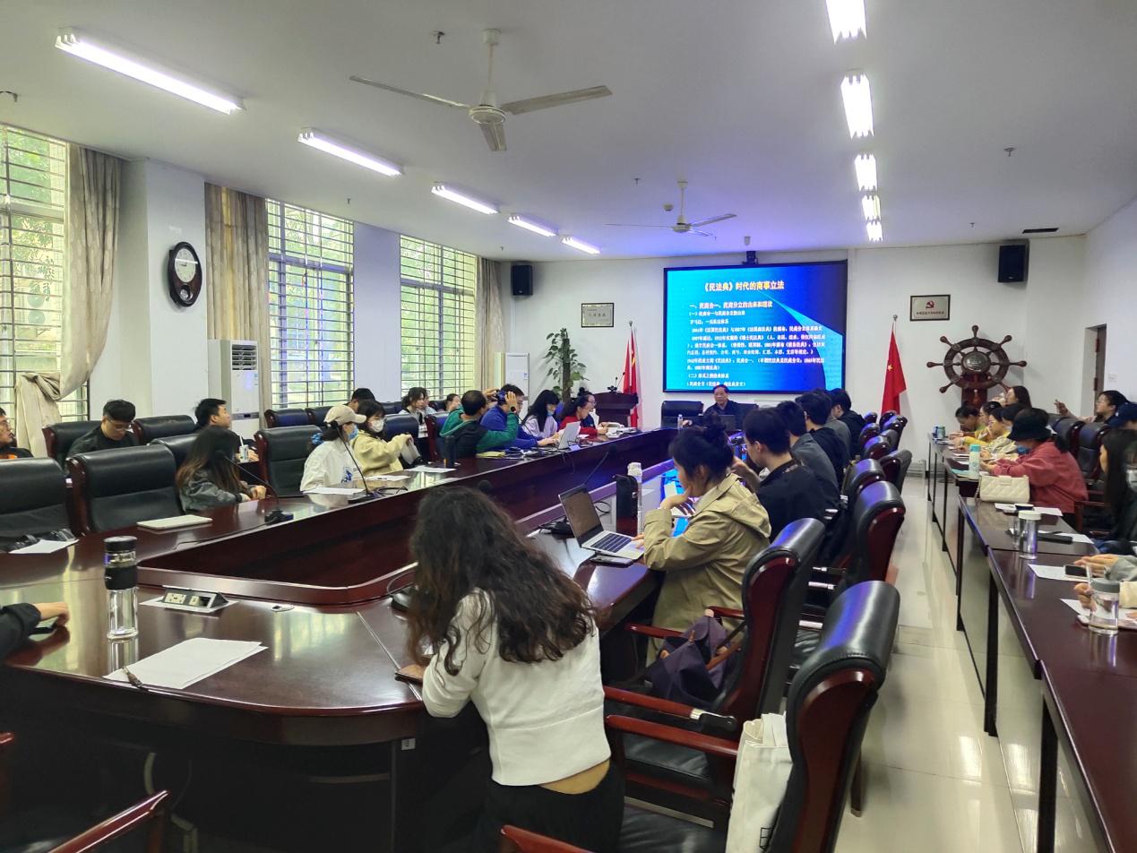 12月4日上午,民法典深度解读系列讲座第6讲”在社科楼C113会议室开讲,伟德victor1946网站教授、博士生导师彭真明主讲《民法典时代的商事立法》一题,近60名本硕博员工现场聆听讲座。