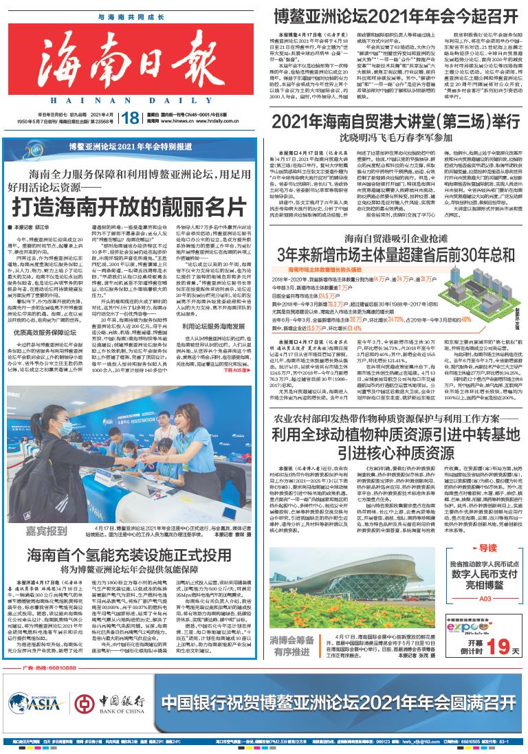 中国的海口,亚洲的三亚,世界的博鳌。博鳌已经成为海南重要的对外交流窗口,每年博鳌亚洲论坛年会的召开更是海南的大事记。多个国际组织、国家的政要,国内外的社会知名人士、各行各界精英共聚海南博鳌,商讨有关人类社会发展的重要议题。2021年的会议按计划于4月17日至21日在博鳌亚洲论坛会议中心举行。由于疫情原因,2020年会议未能在现场举办。同时,今年恰逢博鳌亚洲论坛成立20周年。因此,今年的会议具有更加特殊的意义。