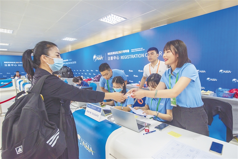 图为海南卫视对博鳌亚洲论坛注册现场情况的报道