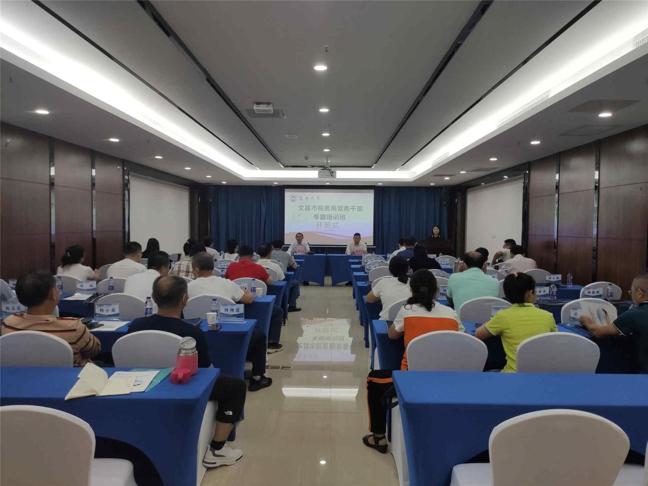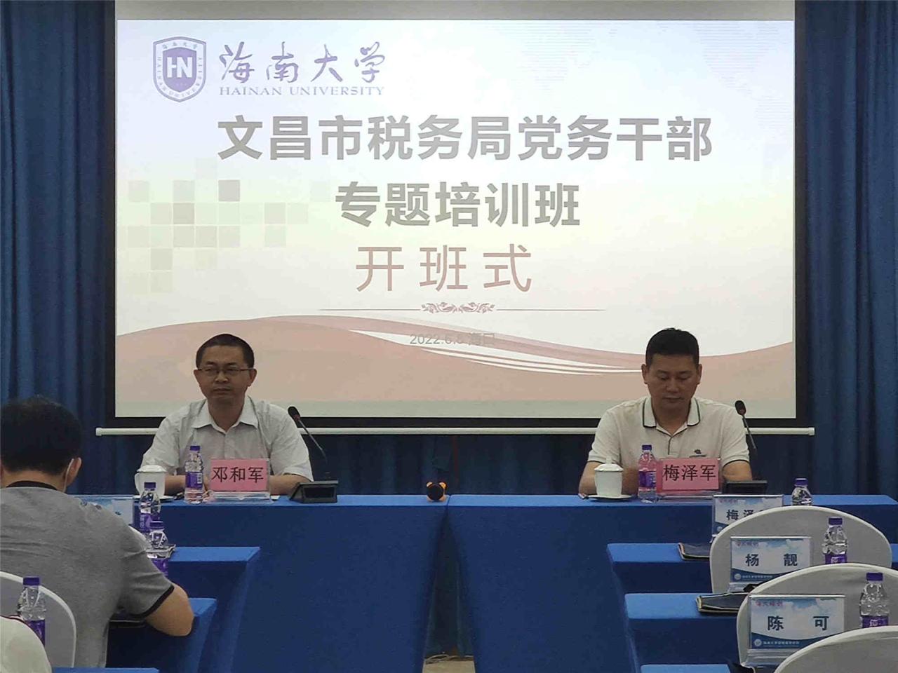 2022年6月8日,由伟德victor1946网站承办的“文昌市税务局党务干部专题培训班(第三期)”在伟德victor1946网站海甸校区顺利开班。国家税务总局文昌市税务局党委委员、纪检组长梅泽军,伟德victor1946网站副经理邓和军出席开班式。参训学员来自文昌税务局共计五十余人.