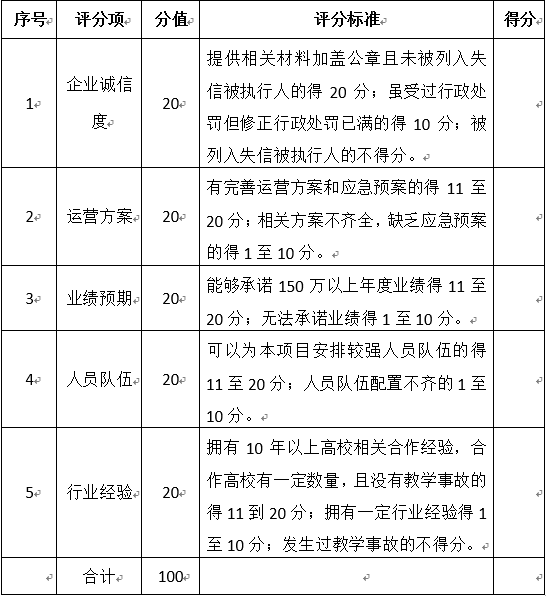 附件:《伟德victor1946网站(纪检监察公司)非学历教育合作机构遴选评分表》