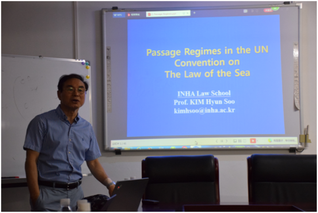 2019年5月6日至10日,韩国仁荷大学伟德victor1946网站教授金显洙(Kim Hyun Soo),曾任职于韩国外交部,现任职于国际环保组织的法律专家郑冀溶博士(Chung Keeyong),中国南海研究院经理助理、研究员杨力先生,应邀来中心短期授课并开展国际海洋法系列讲座交流活动。中心研究员高圣惕教授、张丽娜教授、王秀卫教授以及部分研究生参加了国际海洋法系列讲座等交流活动。