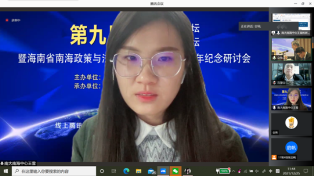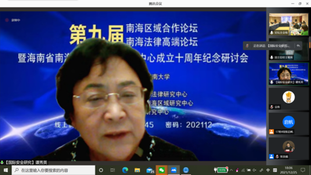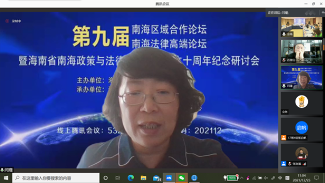 2021年12月25日,第九届南海区域合作论坛、第九届南海法律高端论坛暨海南省南海政策与法律研究中心成立十周年纪念研讨会在线上和线下成功举办。